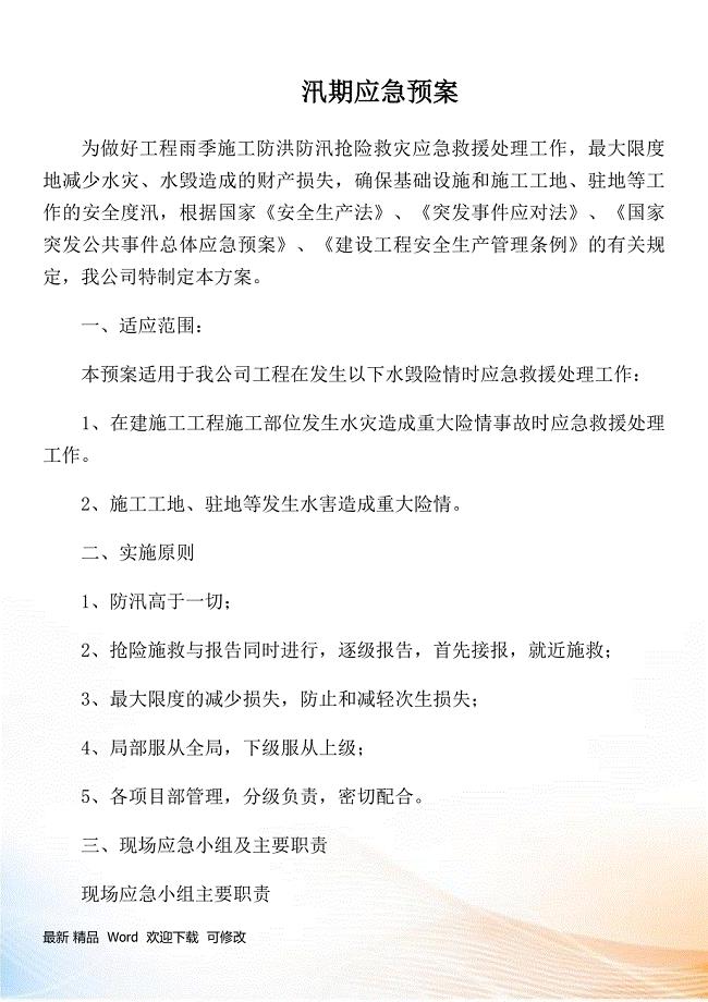 防汛應(yīng)急預(yù)案是應(yīng)對(duì)洪水災(zāi)害的重要措施,旨在明確各級(jí)政府、相關(guān)部門和單位在防汛工作中的職責(zé)和任務(wù),規(guī)范應(yīng)急響應(yīng)程序,確保防汛工作有序進(jìn)行,最新防汛應(yīng)急預(yù)案在總結(jié)歷史經(jīng)驗(yàn)的基礎(chǔ)上,結(jié)合新形勢(shì)、新要求,進(jìn)行了全面優(yōu)化和升級(jí)。
